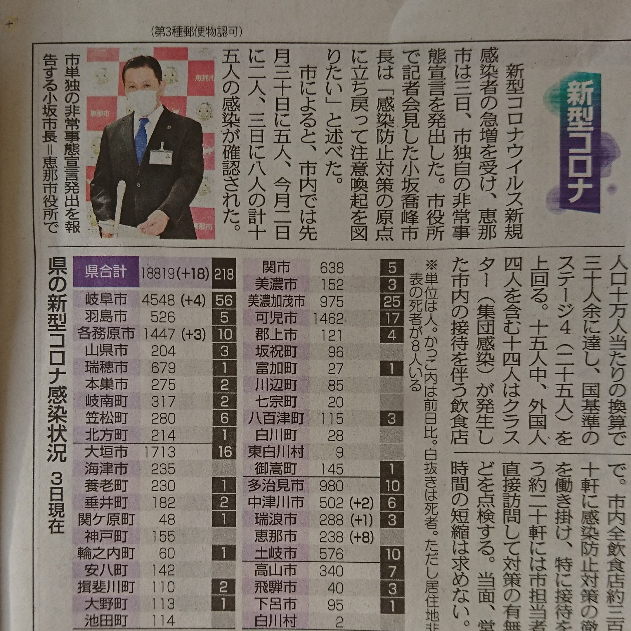 昨日より恵那市が独自の非常事態宣言が発表されました。