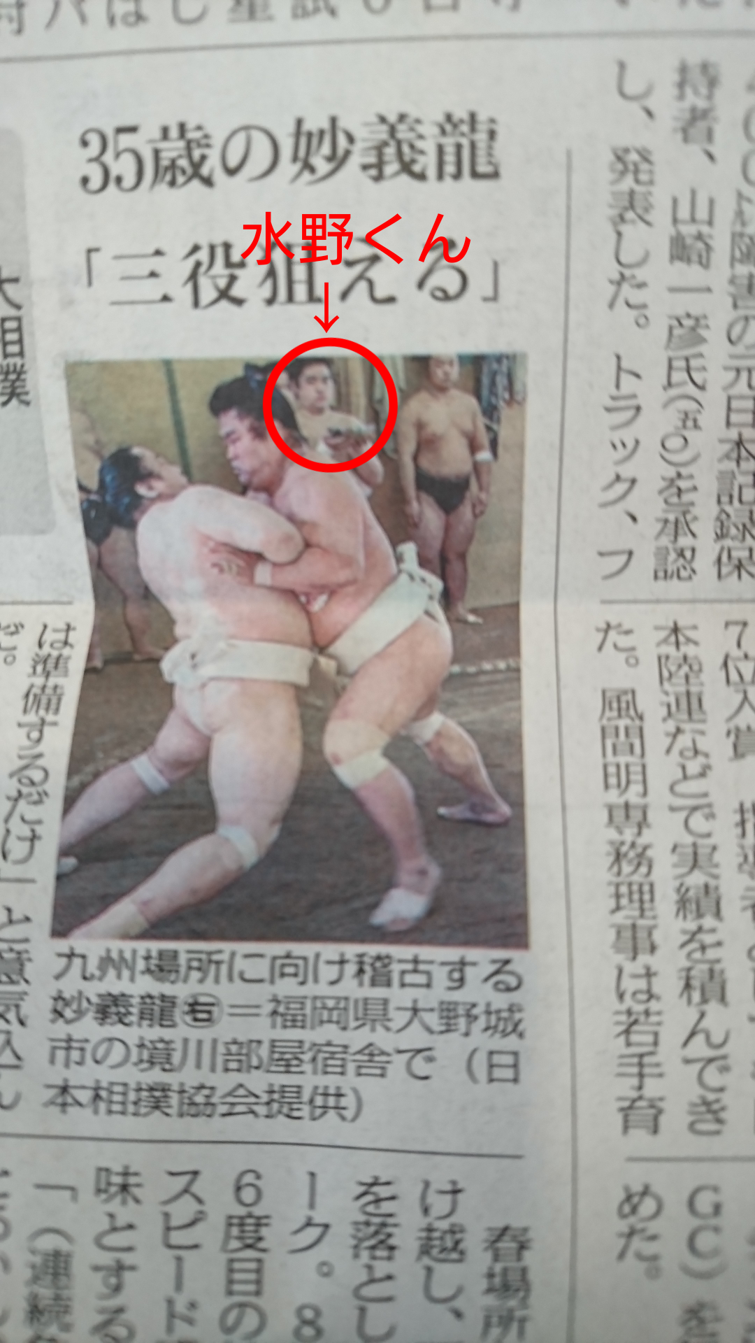 昨日の中日新聞のスポーツ欄に大相撲の妙義龍関の記事が写真付きで載っておりました。