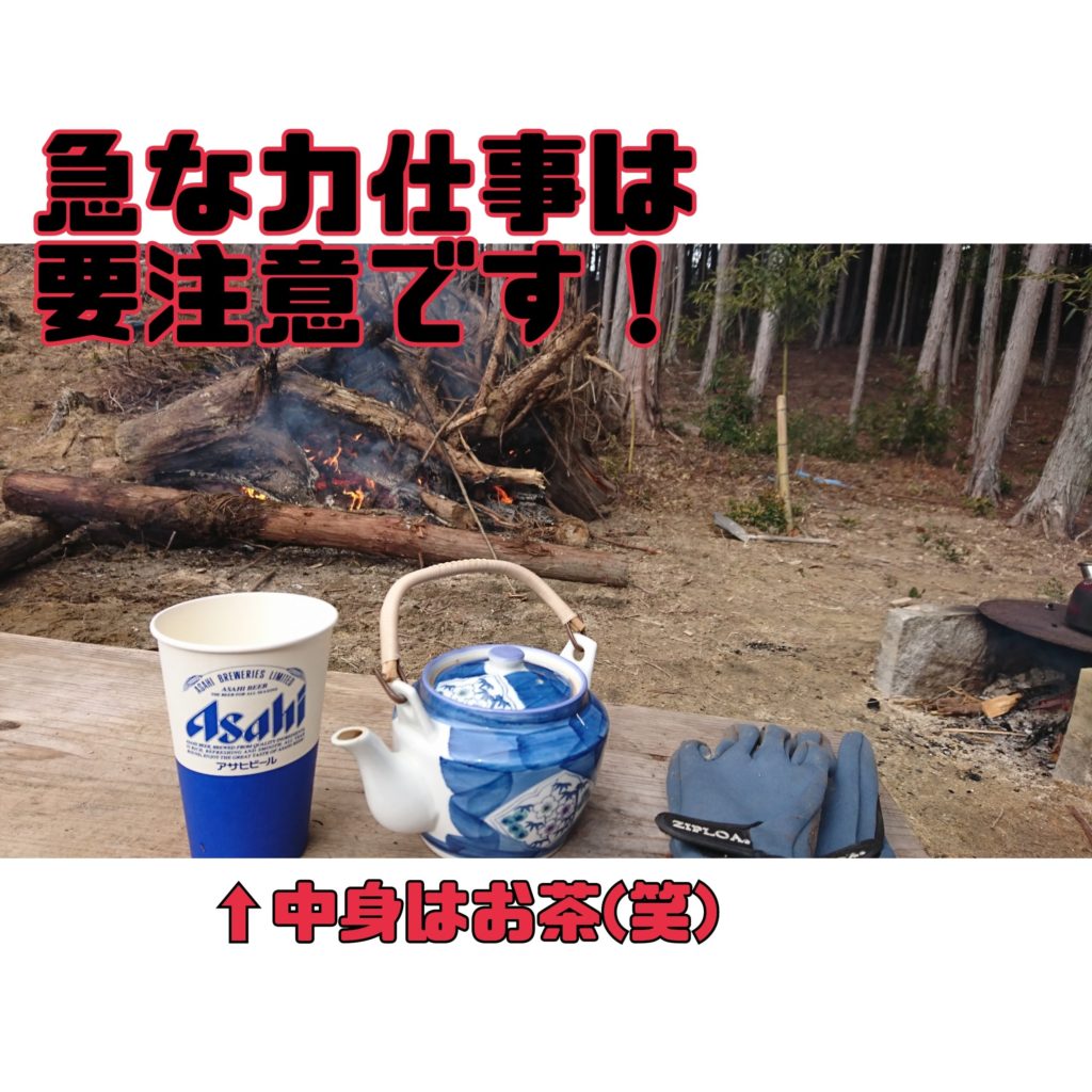 日曜日に蛭川の実家にいきましたら、僕の兄貴が家の裏山の切り倒した木材を片付けて燃やしておりました。