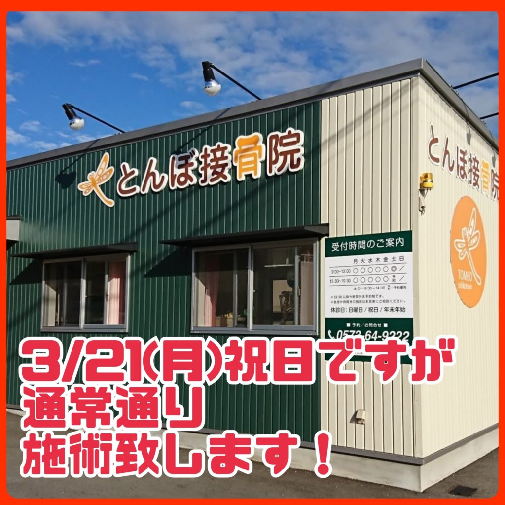 明日3/21(月)は祝日ですが、通常通り施術を致します!