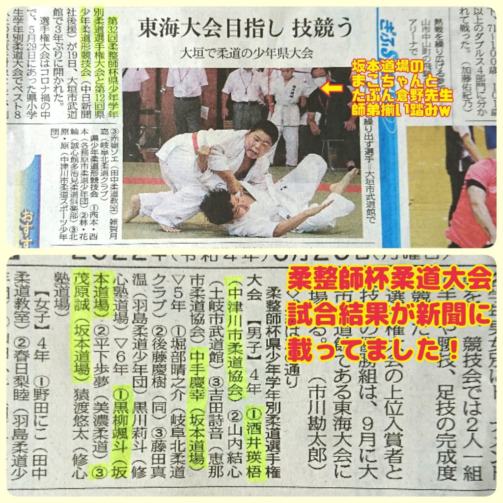 岐阜県柔道整復師杯柔道大会が大垣市で3年ぶりに開催され、大会内容が中日新聞に載っておりました!