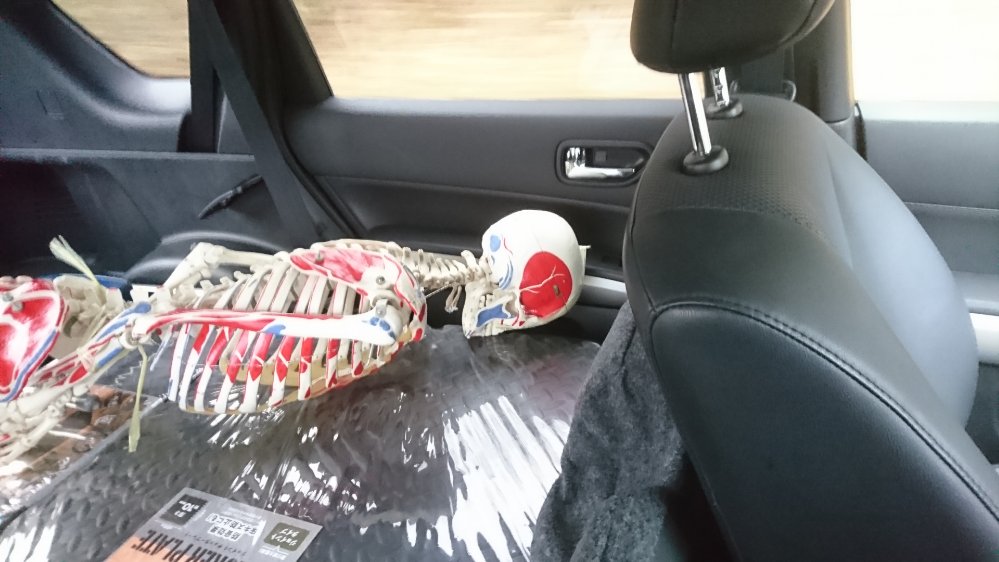 内覧会前日に我が接骨院の守り神を実家に置きっぱなしだったのを思いだし、連れて来ました。何気なく車に連れてきたら、うつ伏せになってました(笑)